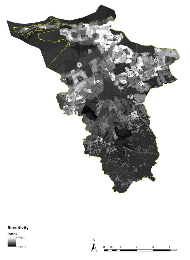 The San Juan Heat Sensitivity Index Map indicates the normalized (between low (0) and high (1)) spatial concentration of the population most sensitive to thermal extremes. In San Juan those sensitive populations include: Black or African American, American Indian and Alaskan Native, Asian, those below 10 years old, those 65 and older, households below the median income, households living in poverty, those who are unemployed, adults living alone, those without a high school diploma, and adults with disabilities.